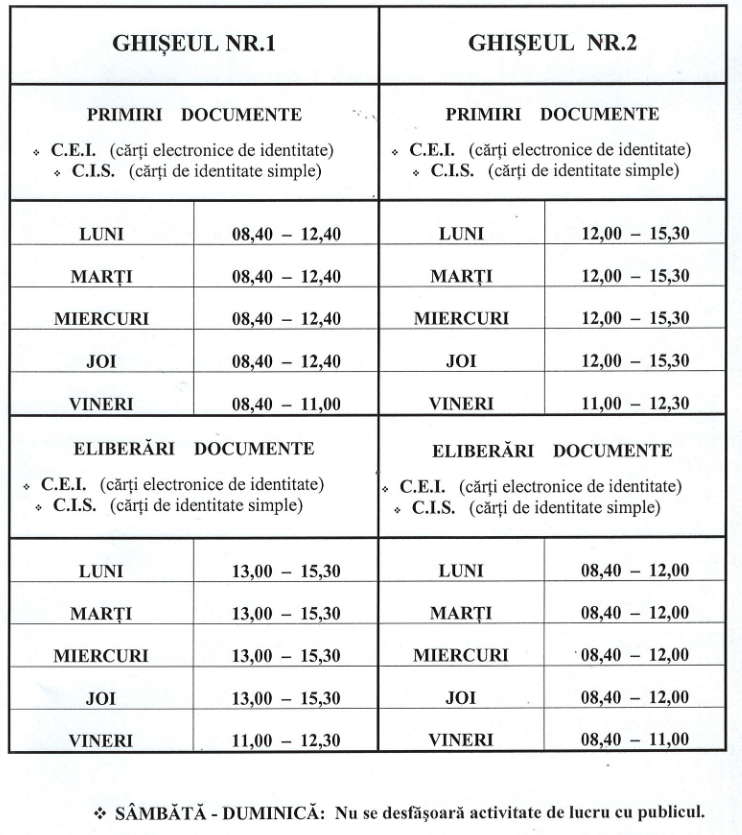 Program de lucru Serviciul de Evidenţă a Persoanelor: